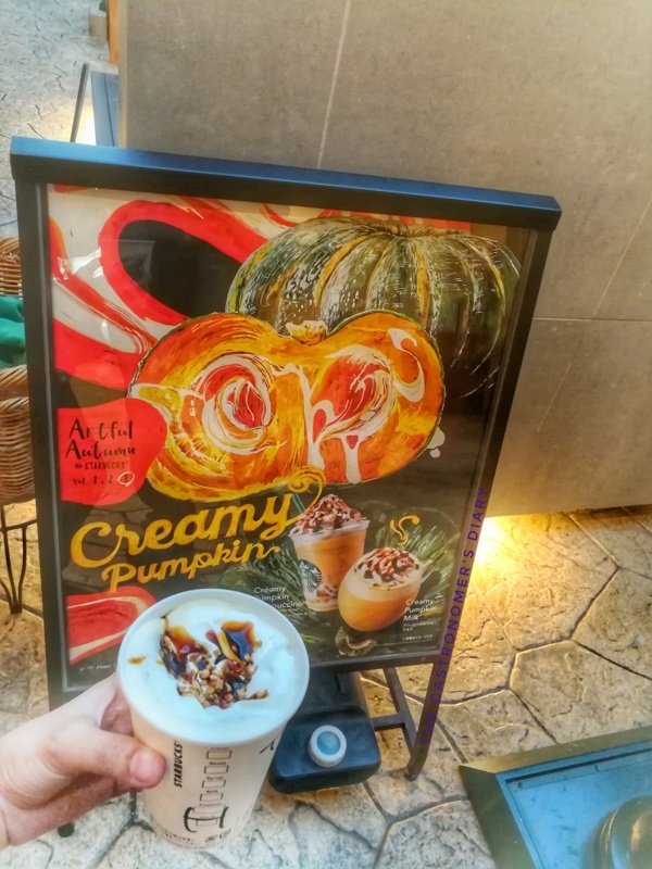 Almost autumn, but not quite. Though I won’t get to see the gradient of orange and red leaves, limited edition and seasonal food items are already being sold. Part of the Artful Autumn Series of Starbucks Japan, the Creamy Pumpkin line features interesting drinks inspired by the flavor and color of autumn.