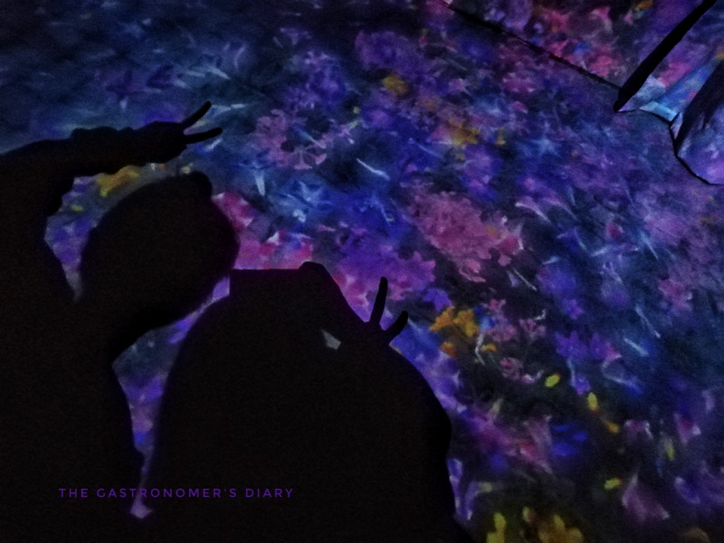 First exhibit and I immediately recognized this from social media posts! The digital waterfall with flowers interacting with where people stand is a popular section of FutureWorld. Within a span of an hour, the flowers change depending on a season of the year. We entered with pink and purple blossoms, took a photo at the waterfall with sunflowers (summer!) and ended our stay with fiery red chrysanthemums. Butterflies also roamed the walls of this room. They fall and disappear when you touch them.