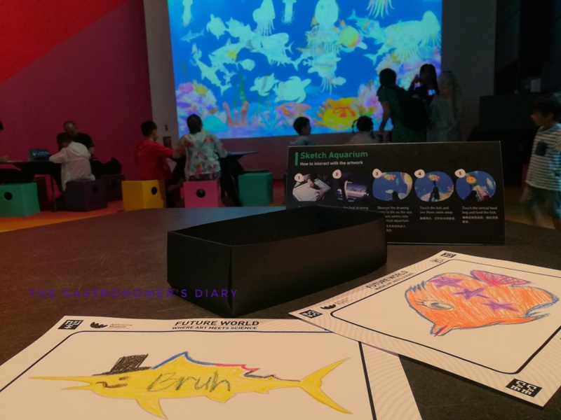 There’s just that hint of pride when you see your work on screen, no matter what it looks like. We drew and colored our own sea creatures from the patterns available and had it scanned into the big screen aquarium. Mine’s the orange flounder, while my cousin’s was the yellow swordfish ‘bruh’ written across its body. Better color in the body of the fish properly so that it will look vibrant on the screen. I think there was also a similar exhibit where you draw people or elements in a village but we just walked through that.