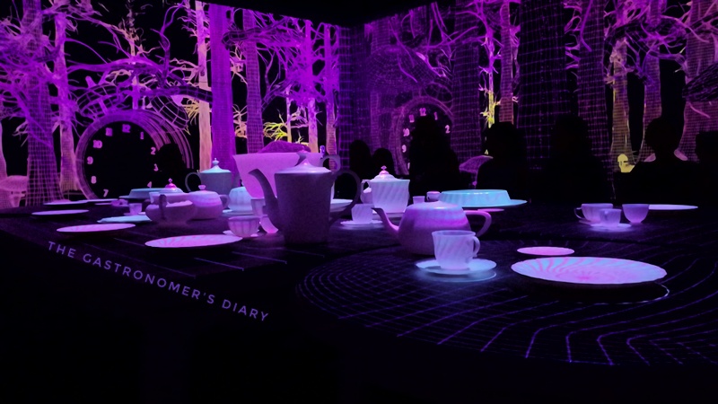 First was a hallway of doors – literally. Some were dead ends, some lead back to the beginning, and some lead back to the next area. Walk through different versions of the movie, name it – fantasy, horror, theater, puppets, humans, Disney, various foreign adaptations, it’s there. There were less interactive sections compared to TeamLab’s but if you are a fan of Wonderland, it is worth seeing. Pages of the original draft of Lewis Carol were there and a lot of significant memorabilia like the original costumes and puppets used in production. You also get to attend a Mad Tea Party as the walls and the tea setup become a canvas for a digital fantasy. This is a temporary exhibit in Arts Science Museum.