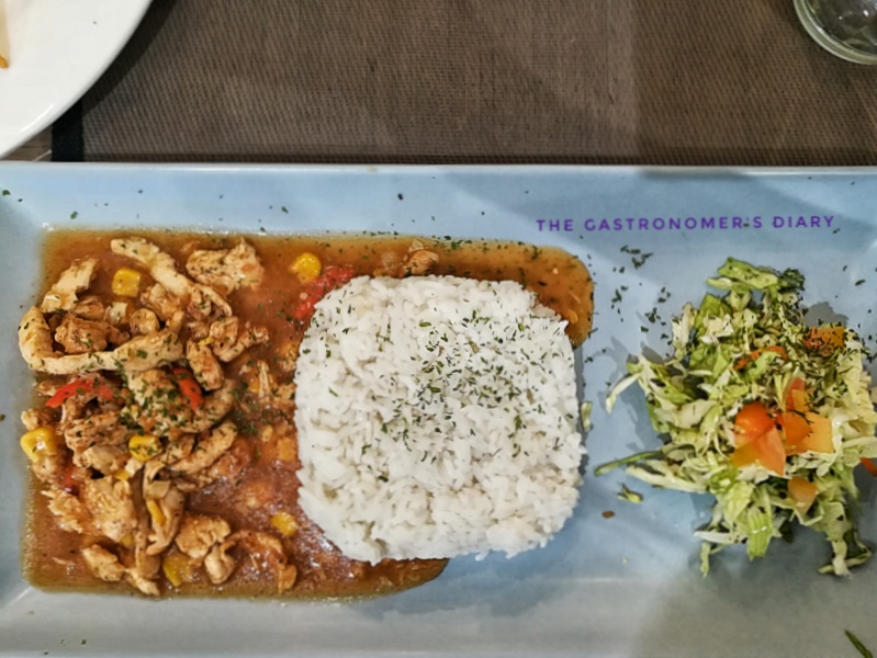 Found the name interesting so I ordered this dish with chicken breast meat, sweet corn kernels, and bell peppers. The tomato sauce was also light, with consistency closer to light soup than thick sarsa. The side salad vinaigrette was more sour in comparison to the one in the nachos salad.
