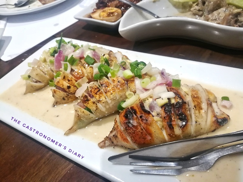For the Inihaw na Pusit, the squid was not rubbery, though not really tender. There are lots of chopped ginger in the stuffing so if you are avoiding ginger, youβll have a pretty hard time segregating it out of the squid. I just ate it all with the squid. It provides a different kind of spice and gets any trace of βlansaβ out of the dish.