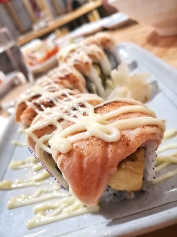 Refreshing mix of banana and cucumber in a roll topped with salmon. It’s different. And I’m not used to having fruit in my maki roll, but it’s still a nice one to try especially if you are into light and sweet flavors.
