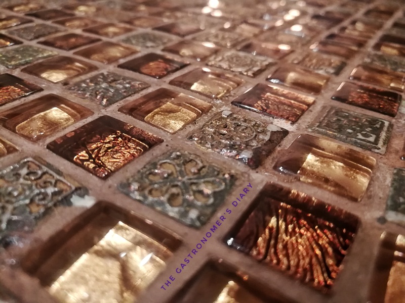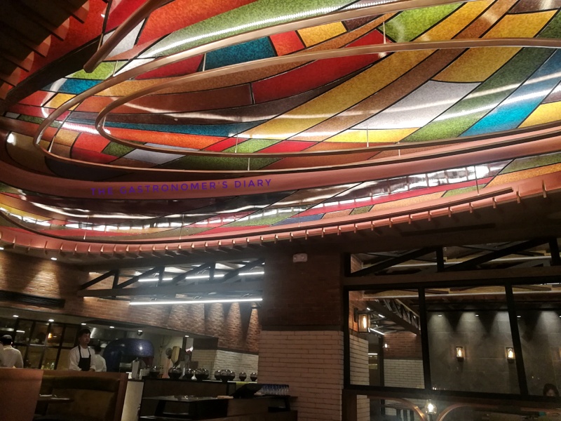 An interesting piece in the décor was the ceiling, looking like stained glass in an oval pattern. Even the tables were designed with a mosaic pattern of small tiles.