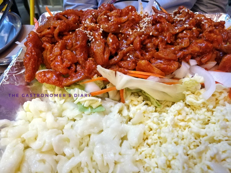 The menu recently changed so I can’t find what this is called anymore. A tiny gas burner heats up the plate and melts the cheese. Make sure to mix up everything so that the chicken and veggies get a fair share of that cheese.