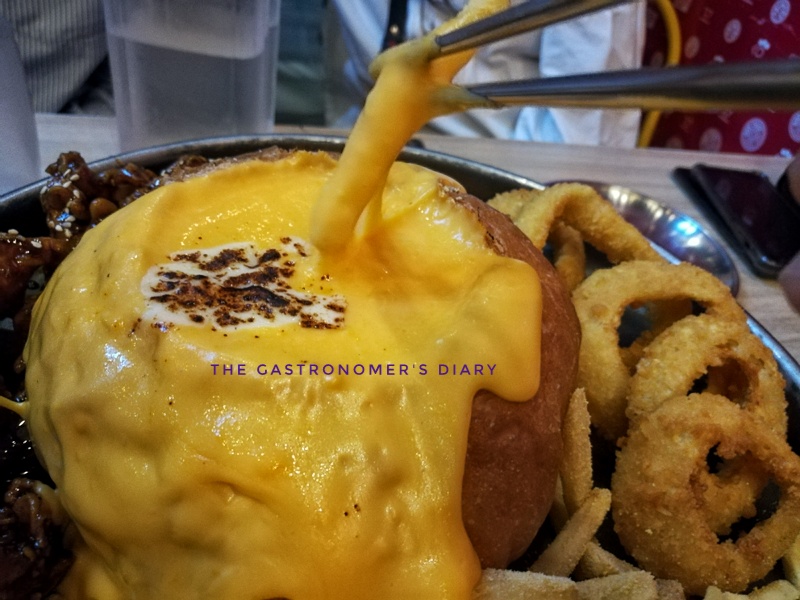 We ordered 2 sets of the cheese fondue. You know how this works – dip your fries, onion rings, and fried chicken chunks with your chosen glaze into that gooey melty cheese in a bread bowl. Up to you if you wanna eat the bread bowl later with the cheese lined walls. Totally edible, promise.