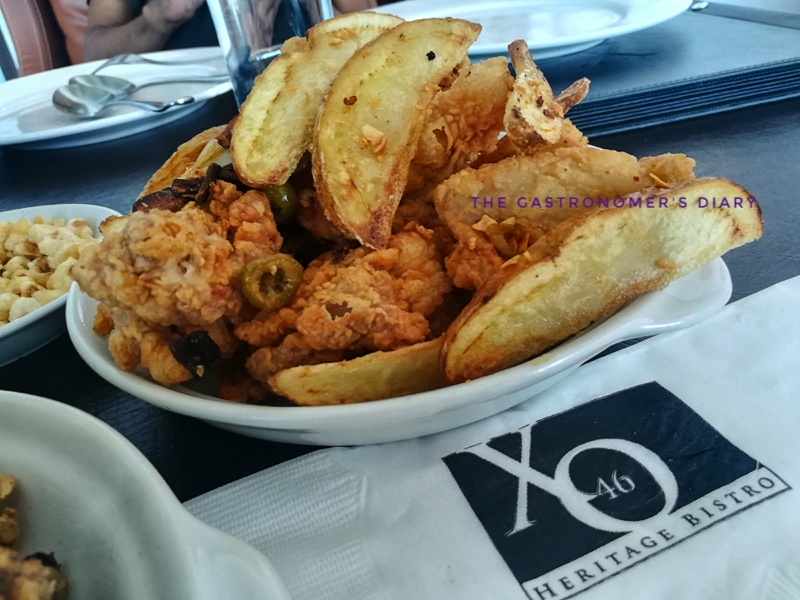 Let me translate that for you – Chicken, potatoes, and Olives – yes that is what it is. Chunks of tender boneless fried chicken and potato wedges in a bowl. With olives and garlic bits of course. I can imagine munching on this while watching a movie. Mayo/dressing served on the side for dipping.
