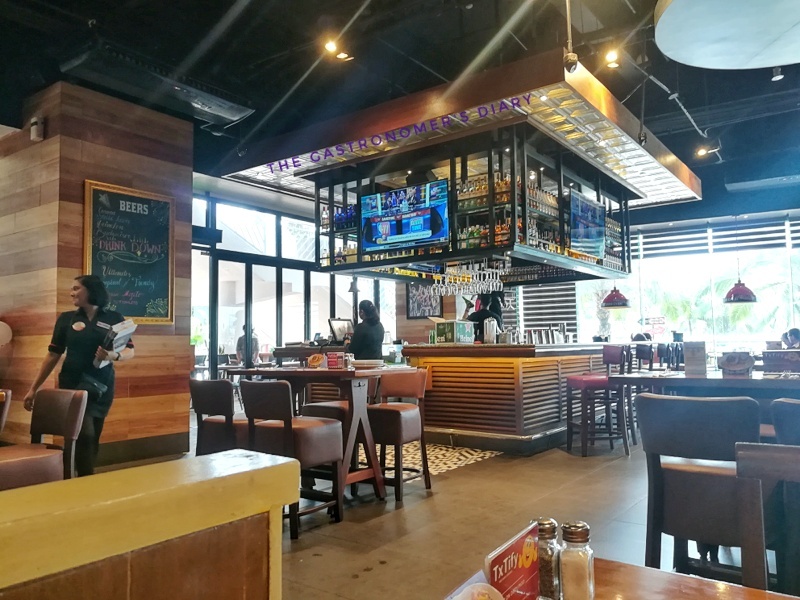 Shifting to a steak house + bar vibe from than the previous American diner + bar ambience after the renovation here at Friday’s MOA branch. Prominent usage of browns and wood patterns replaced the red and white, and pop culture décor.
