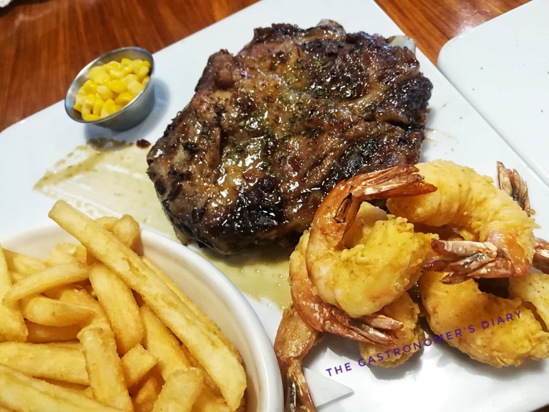 Fried butterfly shrimp was my favorite when we were dining here on special occasions back in my college days. I could easily finish that order or 12 pcs and smaller serving of 6pcs always seemed to be ‘bitin’. Can’t seem to find it on the new menu so I asked the server about it. We were informed that it is an off the menu item now. They still serve the 12pcs order, but not the half order of 6pcs anymore. Since I also wanted to have a bit of meat, I ordered the surf n turf combo of ribs and shrimp instead.