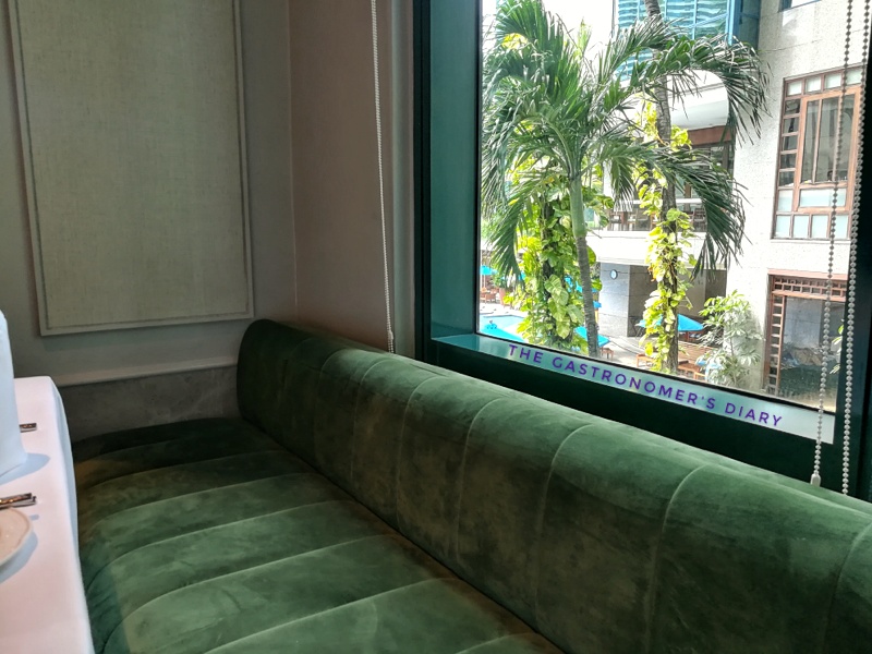 Dining area has two floors. Ground floor seating was overlooking the amenity area so you get a view of the garden and the pool. Greens and whites were the dominant colors used in the interiors giving a fresh tropical feel to the place. Not to mention the leaf patterns and plant décor.