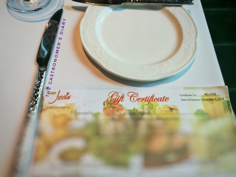 Happy to have discovered Chef Jessie when we used a gift certificate to try their Lunch set for 2. I called in advance to reserve seats on a Saturday since it was required when availing the GC. The set is composed of a salad, soup, and a meal where you choose to have a meat or fish viand, or a combination of both. Complementary bread and butter is served while waiting.