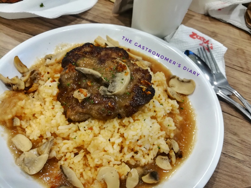 Burgers? Yeah, they put burgers (patties) on rice too. Decided to get my lunch here one time when the officemates decided to have a lunch out. Perfect, since I am used to having rice during lunch. The Food: Zark’s Signature Burger steak Garlic Mushroom Generously sized beef patty with a good amount of sauce and actual mushroom pieces atop seasoned rice. As for the sauce … Continue reading Food: Zarks – Burger on Rice